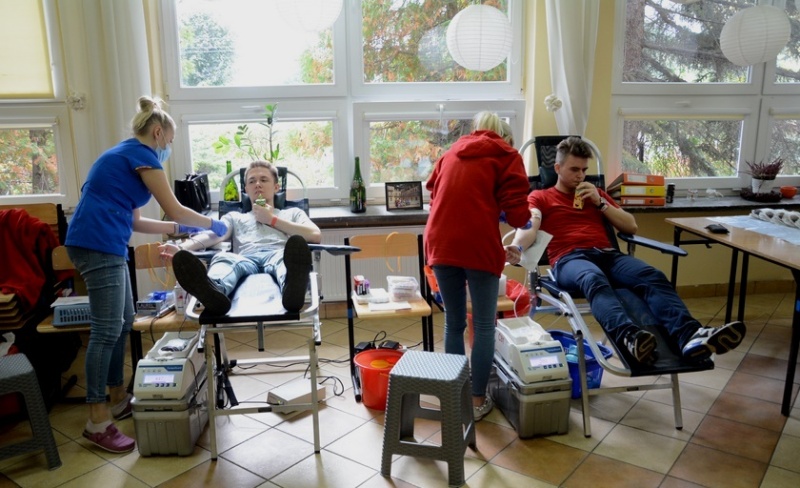 Każdy uczeń po oddaniu krwi otrzymał 8 czekolad, sok, upominek oraz posiłek regenerujący.