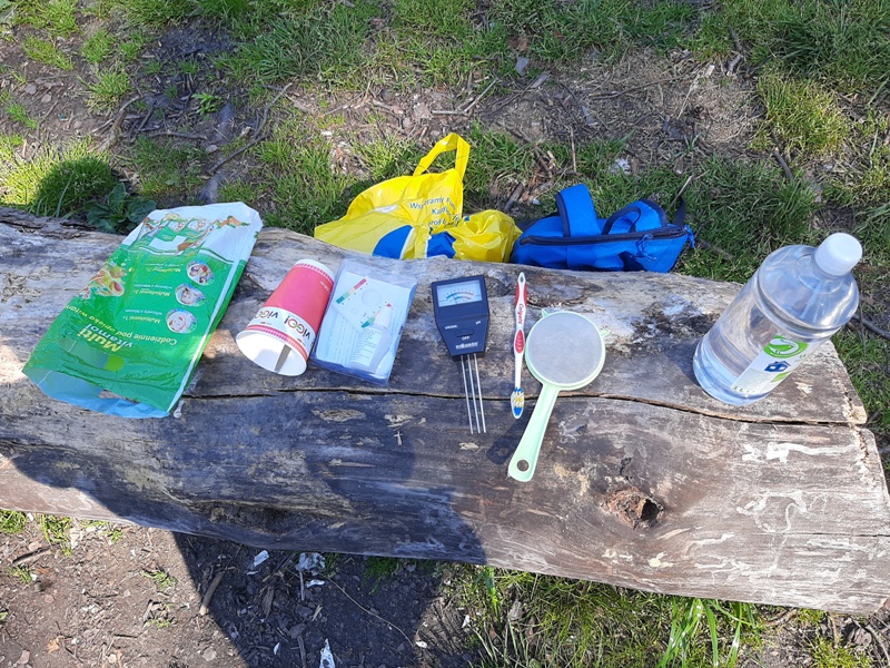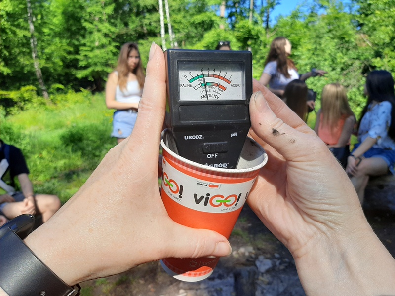 Rozwijanie aktywności badawczej uczniów: Gleba glebie nierówna. Celem zajęć w terenie było określenie właściwości gleby przez badanie parametrów fizykochemicznych popranych próbek.
