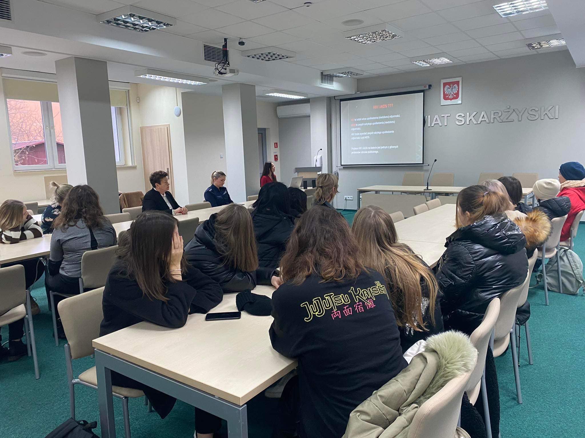 Klasa 1b i klasa 1d wraz z wychowawcami uczestniczyła w sympozjum dotyczącym HIV i AIDS. Podczas spotkania został rozstrzygnięty konkurs na prezentację multimedialną dotyczącą profilaktyki tych chorób.