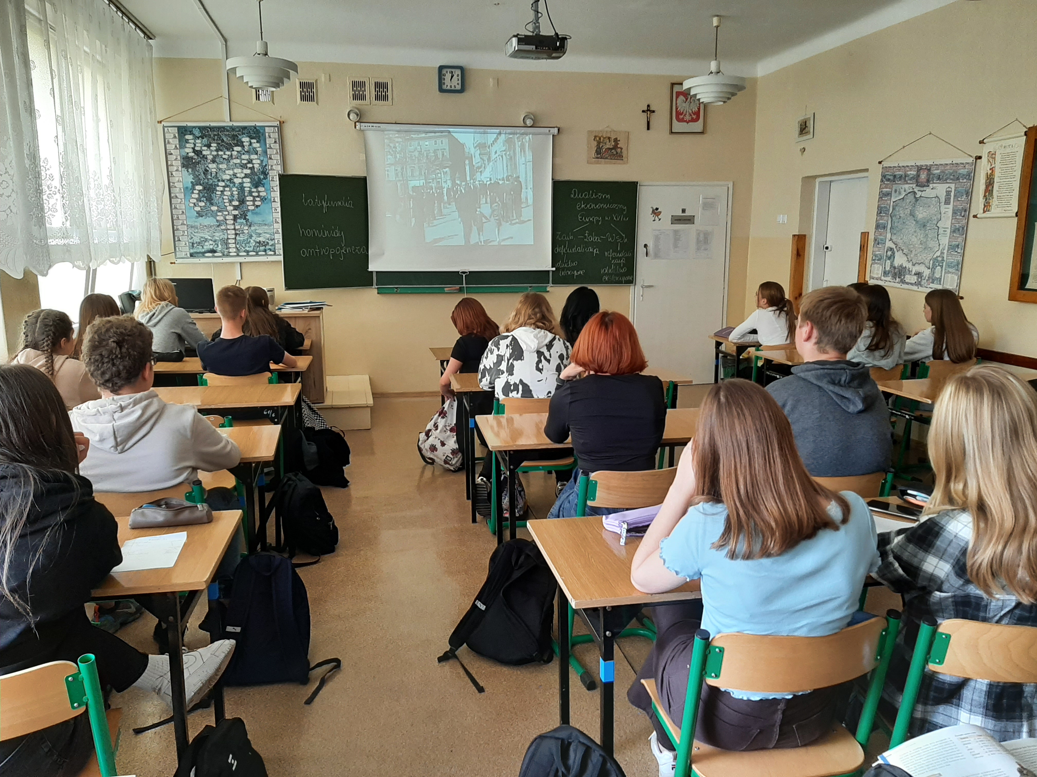 Z początkiem roku szkolnego w ZSE kontynuujemy udział w projekcie edukacyjnym pt. "Tak jak by nas nigdy nie było". Kolejne klasy obejrzały film pt. "Aktion Reinhardt". Teraz wszyscy możemy zobaczyć w szkole wystawę poświęconą tematyce zagłady Żydów.