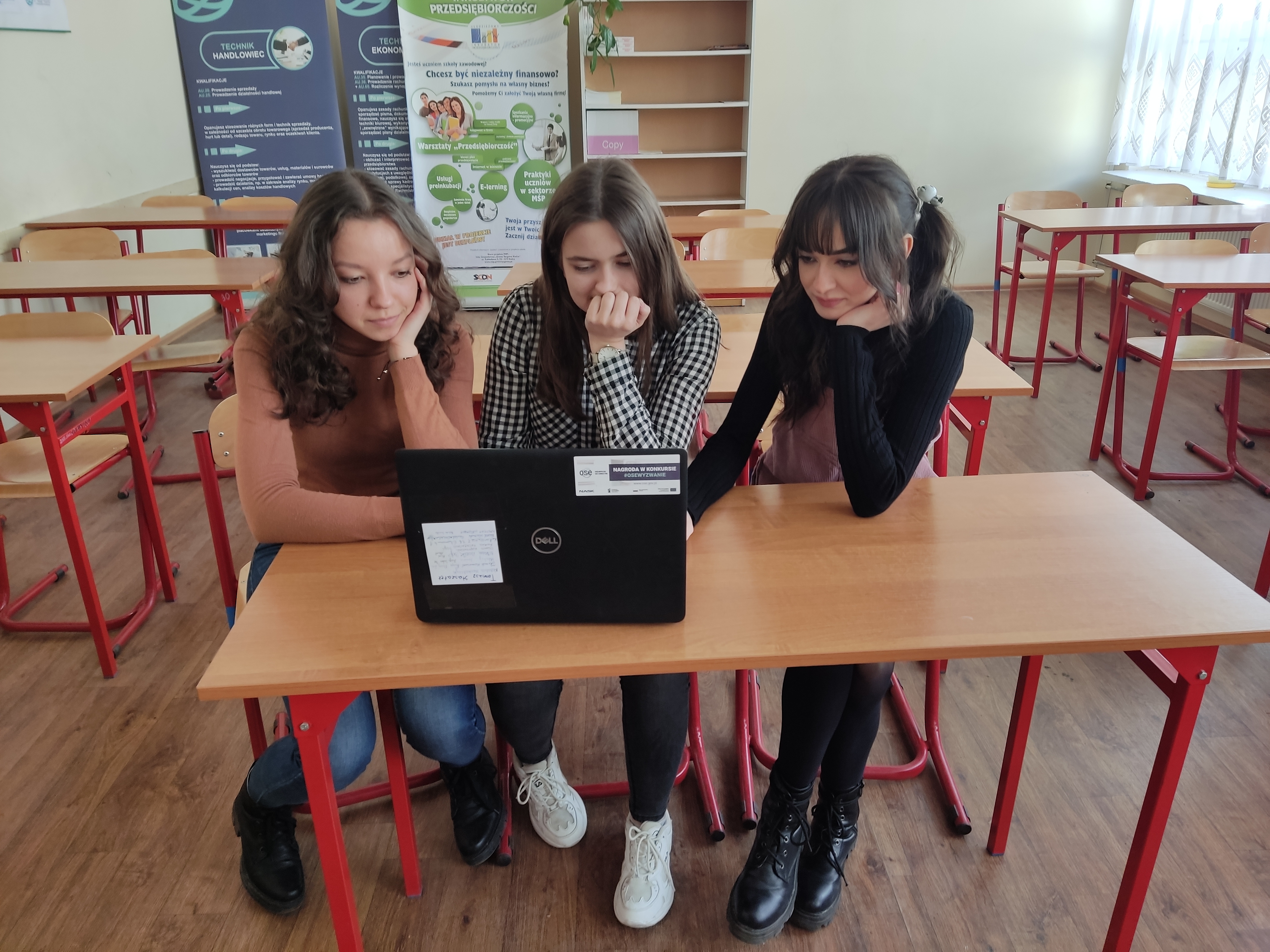 W dniu 15.03.2022 r. uczennice z klasy 3cg Natalia Rożek, Aleksandra Karpeta i Aleksandra Gromek uczestniczyły w rozgrywkach międzyszkolnych konkursu „Przedsiębiorczy na Rynku Finansowym”. Dziewczyny tworzyły zespół i wspólnie online rozwiązywały studium przypadku.  Kryterium jakie będzie brane pod uwagę przy ocenianiu to jak najwięcej prawidłowych odpowiedzi w jak najkrótszym czasie. Celem konkursu jest  wzrost poziomu wiedzy ekonomiczno-finansowej oraz poziomu umiejętności uczniów w zakresie przedsiębiorczości, a także rozwijanie kompetencji społecznych. Wyniki tej części konkursu poznamy 21 marca 2022 r. Do II etapu zostanie zakwalifikowanych 20 najlepszych zespołów z całej Polski. Trzymamy kciuki i życzymy dalszych sukcesów.