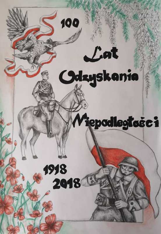 Na konkurs z okazji 100 lecia odzyskania Niepodległości przez Polskę wpłynęło kilkanaście prac spośród których jury wybrało 5 najlepszych. Są to prace: