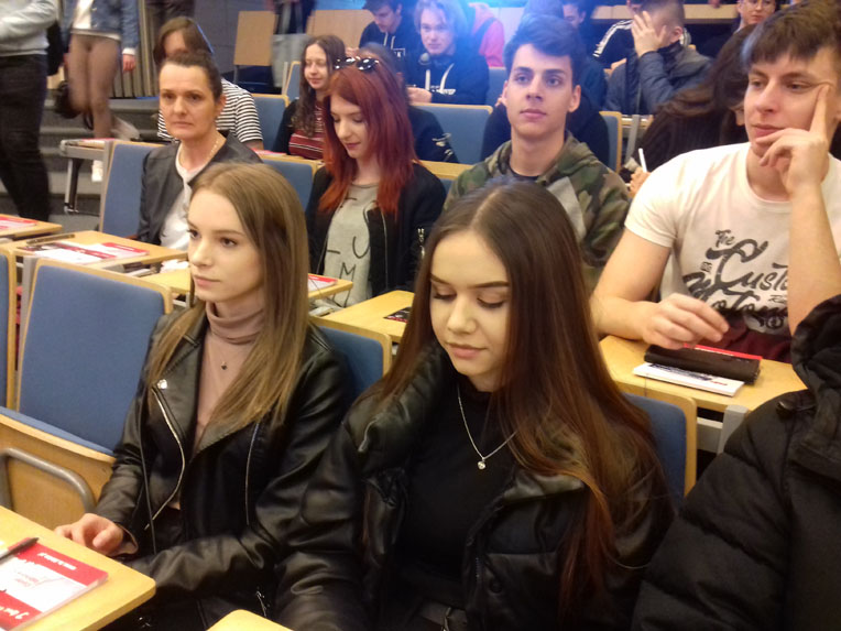 12 kwietnia w auli Politechniki Świętokrzyskiej w Kielcach odbyło się podsumowanie realizacji projektu "Matematyka bez poprawki". Projekt powstał z inicjatywy Świętokrzyskiego Kuratora Oświaty, realizowany był we współpracy z Politechniką Świętokrzyską i skierowany do tegorocznych maturzystów z całego województwa. W uroczystości uczestniczyli m.in.: Świętokrzyski Kurator Oświaty, rektor i prorektor Politechniki Świętokrzyskiej, przedstawiciele samorządów terytorialnych, dyrektorzy szkół, nauczyciele matematyki realizujący projekt oraz młodzież - uczniowie klas maturalnych. Naszą szkołę reprezentowali: p. wicedyrektor Iwona Dębińska, p. Iwona Janta i uczniowie klasy 4b.