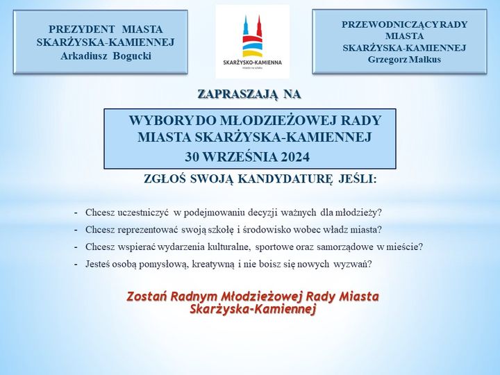 Zapraszamy osoby chętne do udziału w wyborach, do Młodzieżowej Rady Miasta