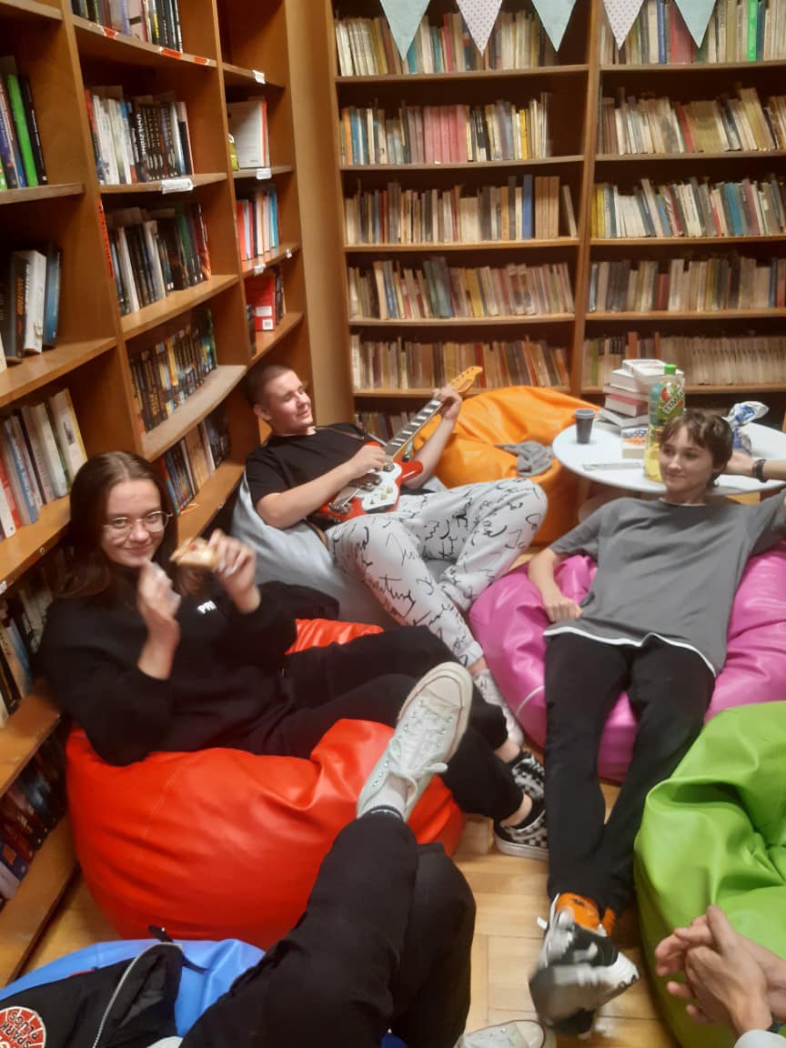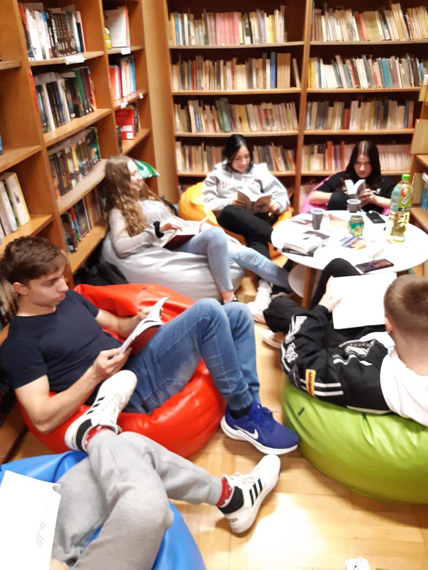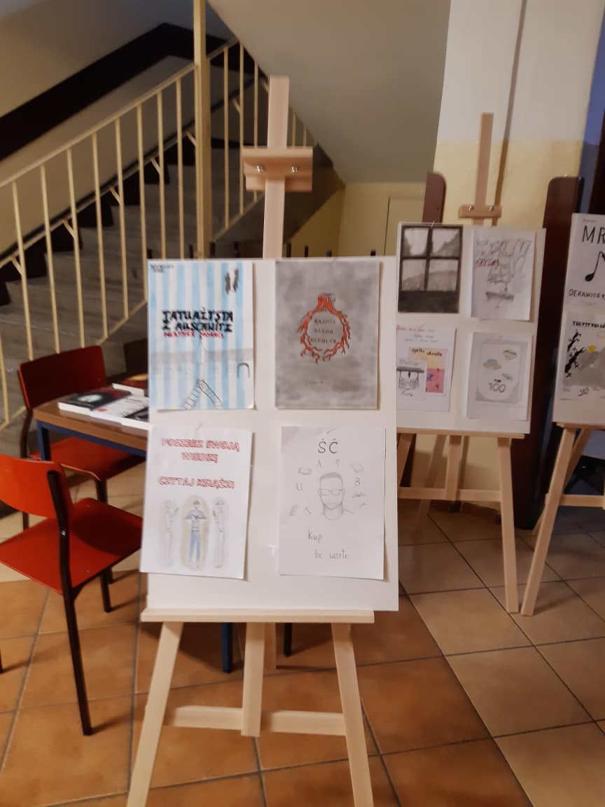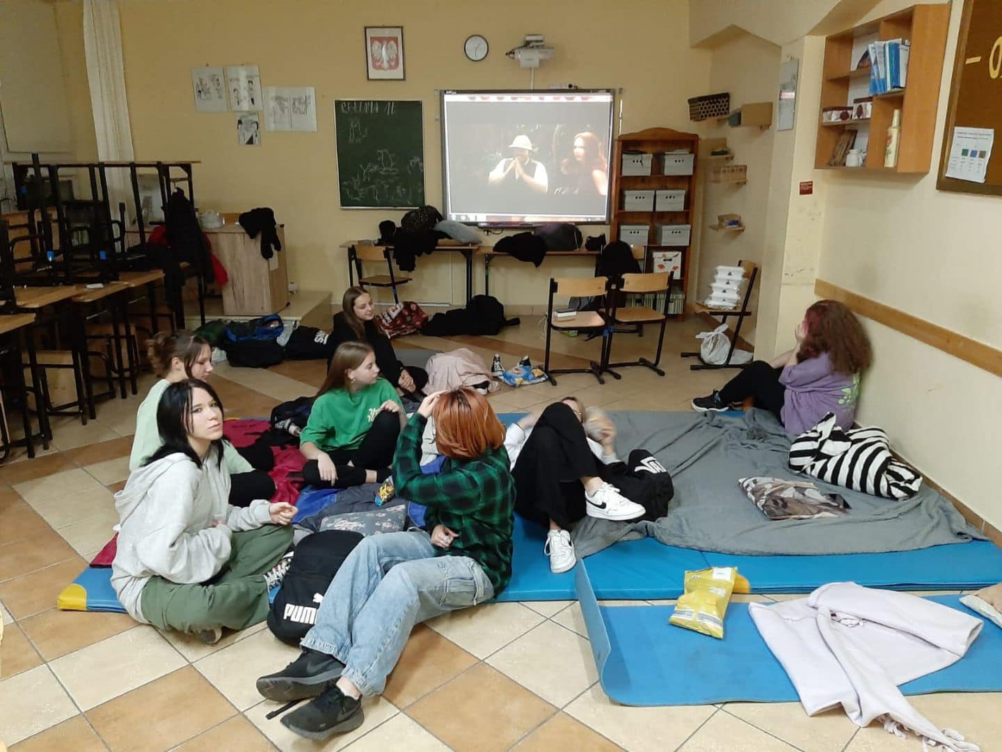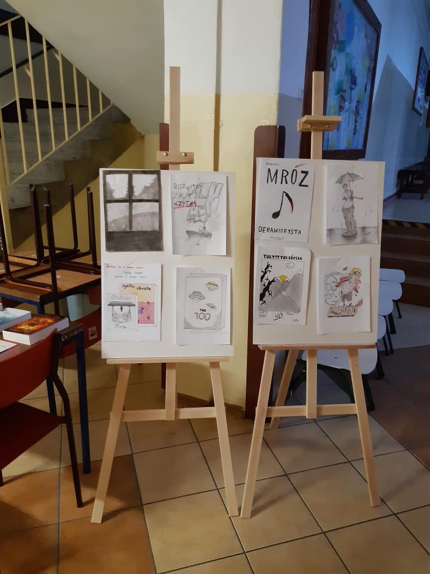 Z 7/ 8 października uczniowie z koła bibliotecznego i artystycznego oraz uczniowie z klasy Ie uczestniczyli w nocy biblioteczno- filmowej. Było aktywnie, książkowo, zagadkowo, muzycznie, filmowo i sportowo a przede wszystkim wesoło i smacznie. Nocne piękne czytanie, wystawa prac i promocja nowych książek. Czas spędzony na nowych pufach. Książki, sztalugi, pufy i inne drobne wyposażenie biblioteki zostały dofinansowane z projektu w ramach Narodowego Programu Rozwoju Czytelnictwa.