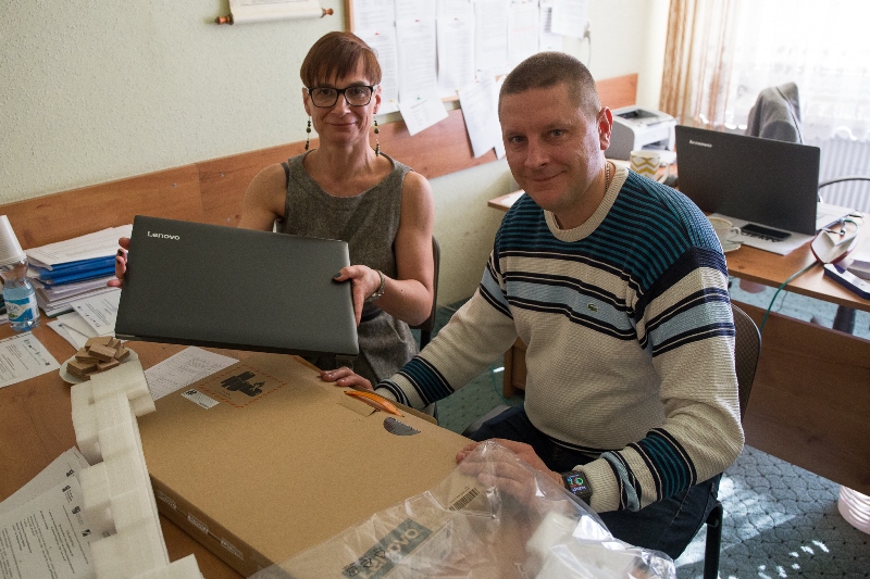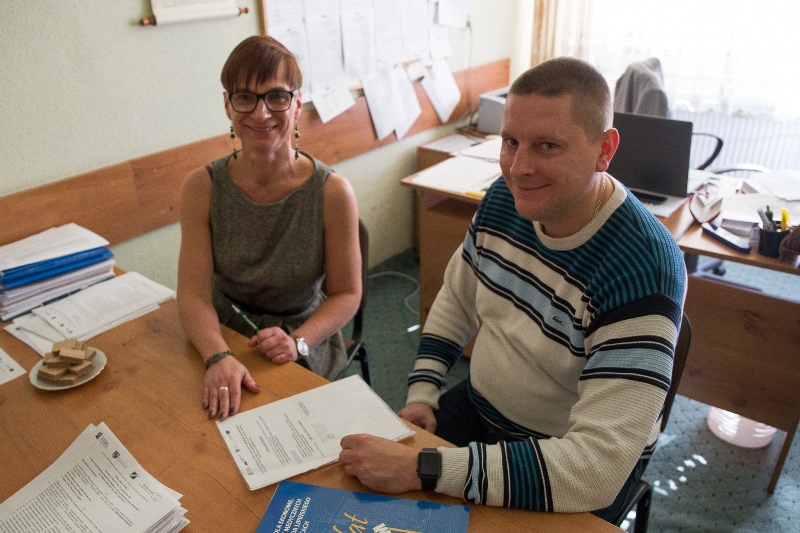 W dniu 8 listopada 2018 roku w naszej szkole odbyło się przekazanie sprzętu do nowej pracowni komputerowej, pozyskanej z funduszy Unii Europejskiej w ramach  projektu „Staż – dobry start II”, realizowanego przez naszą szkołę we współpracy z Wyższą Szkołą Ekonomii, Prawa i Nauk Medycznych im. Edwarda Lipińskiego w Kielcach. Beneficjentami projektu jest stu uczniów naszej szkoły kształcących się we wszystkich oferowanych przez szkołę zawodach. Realizacja projektu przewidziana jest na dwa lata, a dzięki uczestnictwu w nim uczniowie będą mieli okazję odbycia płatnych staży w wiodących  na lokalnym rynku przedsiębiorstwach, jak również będą mogli doskonalić w ramach dodatkowych zajęć swoje kompetencje językowe, matematyczne, cyfrowe i społeczne. Część wspomnianych zajęć odbywać się będzie na terenie szkoły, część natomiast prowadzona będzie przez wykładowców WSEPiNM im. Edwarda Lipińskiego w Kielcach, w siedzibie uczelni. Uczniowie otrzymali także dodatkowe materiały edukacyjne: podręczniki do nauki matematyki, repetytoria i słowniki języka angielskiego.