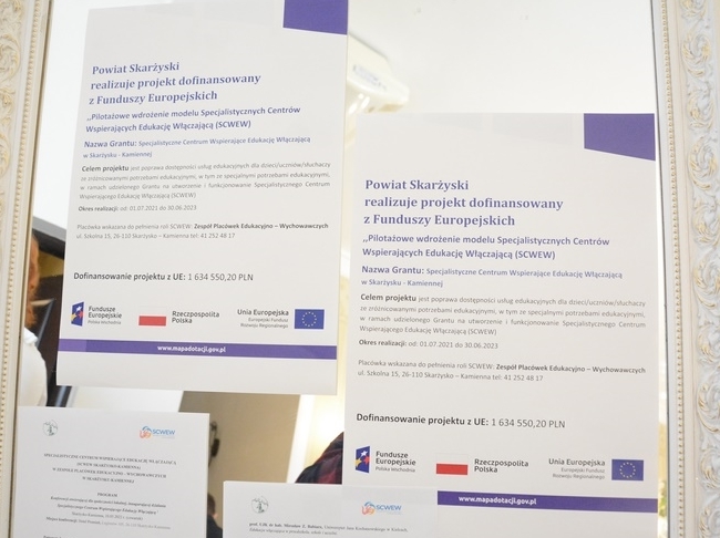 10 marca 2022 roku w Hotelu Promień w Skarżysku – Kamiennej odbyła się Ogólnopolska Konferencja otwierająca projekt „Pilotażowe wdrożenie modelu Specjalistycznych Centrów Wspierających Edukację Włączającą (SCWEW)” w ramach II Osi priorytetowej Programu Operacyjnego Wiedza Edukacja Rozwój „Efektywne polityki publiczne dla rynku pracy, gospodarki i edukacji”, Działanie 2.10 Wysoka jakość systemu oświaty. Zebranych powitał dyrektor Zespołu Placówek Edukacyjno – Wychowawczych w Skarżysku – Kamiennej oraz Lider SCWEW Marcin Kruk. Spotkanie uświetnił występ wychowanków ZPEW. Celem projektu jest utworzenie i funkcjonowanie SCWEW, które zwiększy dostępność usług edukacyjnych dla dzieci i uczniów ze zróżnicowanymi potrzebami edukacyjnymi, podniesienie efektywności podejmowanych działań przez pedagogów na rzecz uczniów z niepełnosprawnościami. Rolę SCWEW pełni Zespół Placówek Edukacyjno – Wychowawczych w Skarżysku – Kamiennej. Jest to jedyne Centrum w województwie świętokrzyskim. Głównym założeniem projektu jest wsparcie nauczycieli w przedszkolach i szkołach ogólnodostępnych objętych wsparciem SCWEW w zakresie poszerzania wiedzy i kompetencji kadry oraz zapewnienie pomocy w wdrażaniu edukacji włączającej oraz pracy z grupą zróżnicowaną. Wsparciem zostało objętych dziewięć placówek oświatowych ze Skarżyska - Kamiennej: Szkoła Podstawowa nr 5 im. Jana Pawła II, Szkoła Podstawowa nr 7 im. Obrońców Westerplatte, Przedszkole Publiczne nr 7 im. Janusza Korczaka, I Liceum Ogólnokształcące im. Juliusza Słowackiego, Branżowa Szkoła I Stopnia nr 3 Zespołu Szkół Samochodowo – Usługowych im. Władysława Oseta Wasilewskiego, Samorządowa Szkoła Podstawowa nr 3 im. Stefana Żeromskiego w Suchedniowie, Przedszkole Samorządowe w Skarżysku Kościelnym, Publiczne Przedszkole w Jagodnem oraz : Technikum nr 2 Zespołu Szkół Ekonomicznych W programie konferencji znalazły się : - Uroczyste otwarcie konferencji przez Dyrektora Zespołu Placówek Edukacyjno-Wychowawczych i Lidera Specjalistycznego Centrum Wspierającego Edukację Włączającą - Marcina Kruka. - Wystąpienia okolicznościowe zaproszonych gości. - wspaniały, zabawny, wzruszający i niezwykle inspirujący program artystyczny uczniów i wychowanków z Zespołu Placówek Edukacyjno-Wychowawczych w Skarżysku-Kamiennej. Kolejnym bardzo ważnym punktem spotkania była sesja plenarna podczas której zostały zaprezentowane cele i założenia modelu SCWEW prezentowane m.in. przez : • prof. UJK dr hab. Mirosław Z. Babiarz, Uniwersytet Jana Kochanowskiego w Kielcach, Edukacja włączająca w przedszkolu, szkole i uczelni. • prof. UAM dr hab. Beata Jachimczak, Specjalistyczne Centrum Wspierające Edukację Włączającą, Idea edukacji włączającej a budowanie systemu wsparcia poprzez SCWEW • Iza Lesińska, Ośrodek Rozwoju Edukacji, Budowanie systemu stałego wsparcia dla nauczycieli przedszkoli i szkół ogólnodostępnych w kontekście SCWEW. • Agnieszka Pietryka, Ośrodek Rozwoju Edukacji, SCWEW jako jeden z projektów w obszarze edukacji włączającej. • Andrzej Michalski, Państwowy Fundusz Rehabilitacji Osób Niepełnosprawnych, Współpraca PFRON z OWiT na rzecz osób z niepełnosprawnościami. • Katarzyna Nowacka, Świętokrzyski Wicekurator Oświaty, Działania podejmowane przez Kuratorium Oświaty w Kielcach w ramach upowszechniania edukacji włączającej. • Katarzyna Bilska, Członek Zarządu Powiatu Skarżyskiego, Kształcenie i wspieranie osób ze specjalnymi potrzebami edukacyjnymi w powiecie skarżyskim. • Marcin Kruk, Specjalistyczne Centrum Wspierające Edukację Włączającą, Zespół Placówek Edukacyjno-Wychowawczych, SCWEW – główne założenia projektu i obszary działania. • Paulina Papka i Paulina Kosno, Krajowe Towarzystwo Autyzmu Oddział Kielce, Dostosowanie przestrzeni kulturalno-publicznej do potrzeb i możliwości osób ze spektrum autyzmu na przykładzie „Niebieskiej Strefy”. Niezwykle istotnym elementem Konferencji był panel dyskusyjny, dzięki któremu można było poznać wyzwania przed którymi stoją placówki edukacyjne objęte programem, zrozumieć cele i metody wdrażania projektu oraz zasady współpracy między Liderami w którym głos zabrali: - Pani Dyrektor Joanna Romanowska, koordynator SCWEW, wygłosiła prelekcję pt. Uczestnictwo w projekcie „Pilotażowe wdrożenie modelu SCWEW” drogą do sukcesu inkluzyjności w szkole ogólnodostępnej. - dr Elena Karpuszenko, PWSM Pomerania, Zespół Szkół Gastronomicznych im. M. Curie -Skłodowskiej w Częstochowie, Kształcenie pedagogów specjalnych. - Paweł Garbuzik, Zespół Placówek Edukacyjno-Wychowawczych, Uniwersytet Jana Kochanowskiego w Kielcach, Ośrodek Wsparcia i Testów – główne założenia projektu i obszary działania.
