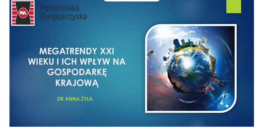 W dniu dzisiejszym uczniowie wzięli udział w webinariun pt. „Megatrendy XXI wieku i ich wpływ na gospodarkę krajową”. Spotkanie poprowadziła dr Anna Żyła.