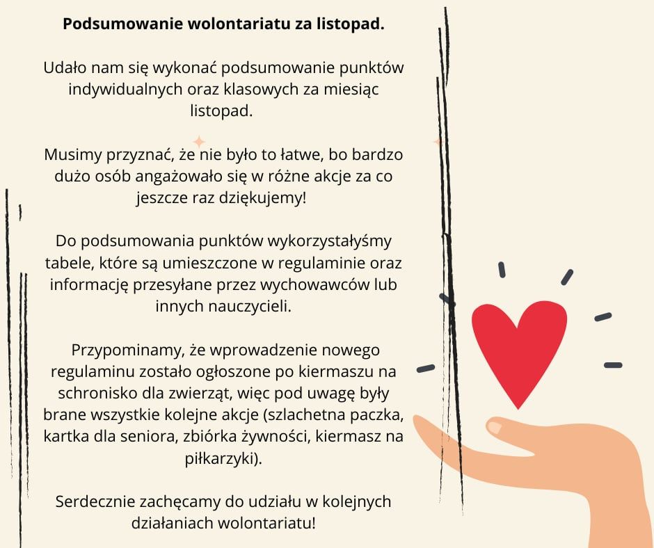 Podsumowanie wolontariatu za listopad Zespół Szkół Ekonomicznych im. Mikołaja Kopernika w Skarżysku-Kamiennej lista wywieszona na tablicy obok pokoju nauczycielskiego.
