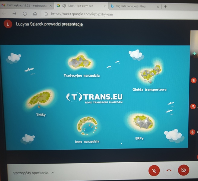 Rozpoczęliśmy współpracę z Wirtualną Akademią TransEdu wspierającą kształcenie uczniów i studentów branży TSL. Dziś tj. 17 lutego 2021 r. spedytorzy z klasy 2ep i 2eg wzięli udział w wykładzie on-line pod hasłem „Narzędzia w logistyce 4.0” prowadzonym przez Panią Lucynę Szierok- Giel. Omówiono podstawowe narzędzia wspierające pracę w branży TSL: giełdy transportowe, system ERP (Enterprise Resources Planning) - planowania zasobów przedsiębiorstwa, system TMS (Transportation Management System) – system zarządzania transportem, tradycyjne narzędzia i aplikacje (np. goodloading). Zaprezentowano zmiany dokonujące się na przestrzeni lat: era - 1.0 Steam Engine, 2.0 Electricity, 3.0 Computers, 4.0 Data. Przedstawiono oczekiwania przyszłych pracodawców i potrzebne uczniom kompetencje. Współpraca z Wirtualną Akademią TransEdu będzie kontynuowana.