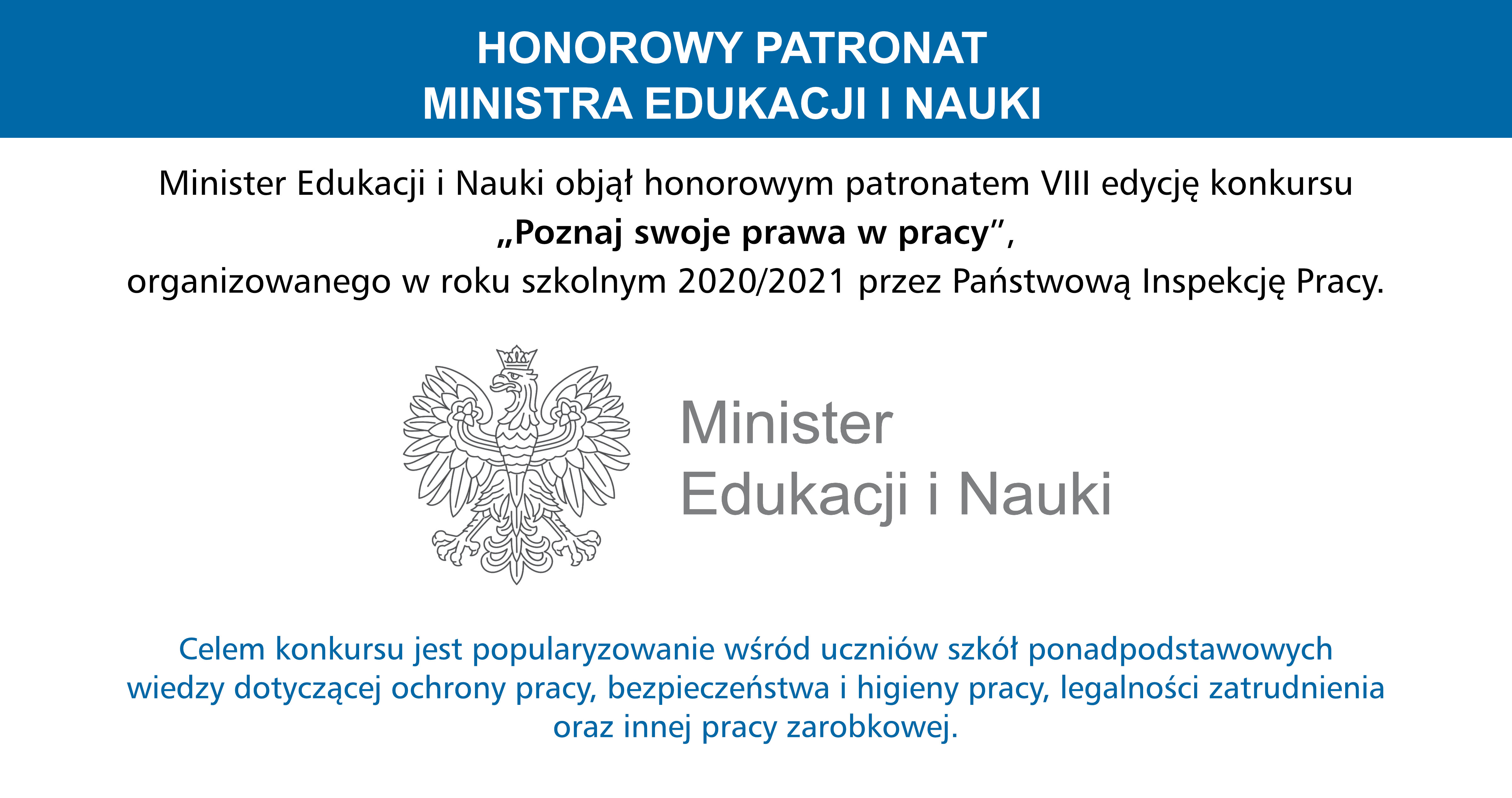 W ramach realizowanego programu „Kultura bezpieczeństwa” nasza szkoła będzie organizować konkurs pt. „Poznaj swoje prawa w pracy”. Głównym celem jest popularyzowanie idei kultury bezpieczeństwa pracy oraz dbałość o stanowisko pracy. Niebawem etap szkolny konkursu. Chętnych, którzy będą chcieli wziąć udział w konkursie prosimy o zapisywanie się do poniedziałku 18.01.2021r. do p. Jolanty Jaglińskiej i Anny Suwały (zgłoszenia prosimy kierować na maila: podając swoje imię i nazwisko, klasę).
