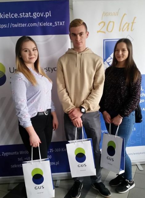 W dniu 04.12.2019 r. w Wyższej Szkole Ekonomii, Prawa i Nauk Społecznych im. prof. Edwarda Lipińskiego w Kielcach odbyły się zawody okręgowe IV edycji Olimpiady Statystycznej. Naszą szkołę reprezentowali uczniowie klasy IV c Paulina Ulewińska, Zuzanna Obara i Jakub Gromek. Do zwodów okręgowych zakwalifikowało się 48 uczniów z województwa świętokrzyskiego. Cieszymy się, że wśród nich byli nasi uczniowie. Olimpiada Statystyczna jest olimpiadą o zasięgu ogólnopolskim, obejmuje dziedzinę nauk ekonomicznych w następujących dyscyplinach naukowych: ekonomia, administracja oraz handel a jej celem jest upowszechnianie wiedzy i rozwijanie umiejętności z zakresu statystyki w obszarze analiz społeczno-gospodarczych.
